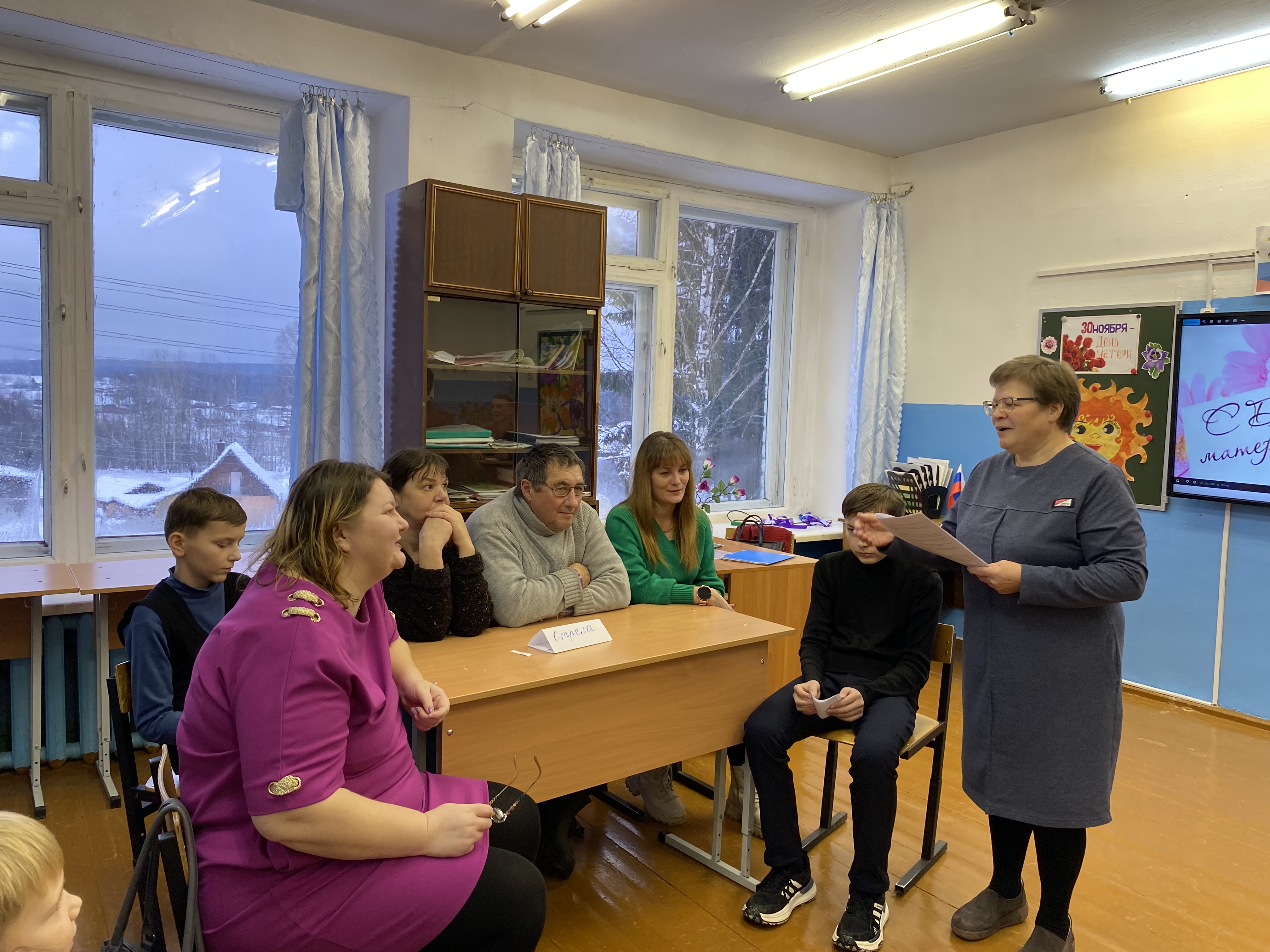 Советник поздравила всех мам с праздником и вместе с учениками 8 класса исполнили в подарок песню, а Ольга Викторовна провела интересное мероприятие.