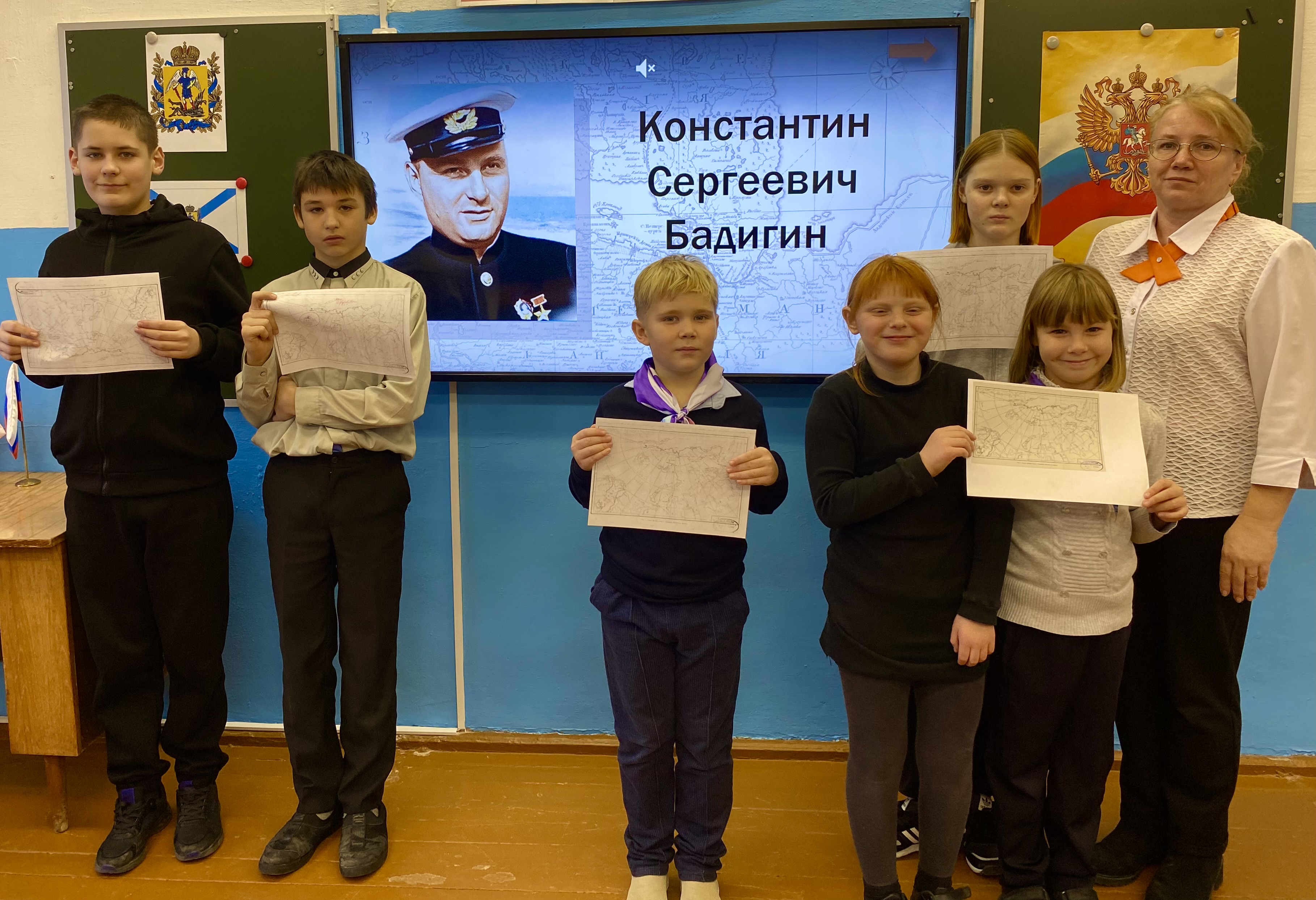Басавина Наталья Ивановна, советник директора по воспитанию и взаимодействию с детскими общественными объединениями, рассказала биографию Константина Бадигина и организовала для учеников 1-6 классов интерактивную игру-путешествие по станциям с элементами обучения "Морские Приключения с Капитаном Бадигиным". Ребята с увлечением путешествовали по станциям «Арктическая фауна», «Карта Бадигина», «Морской словарь», «Вопросы о Бадигине», открывая для себя интересные и новые факты.